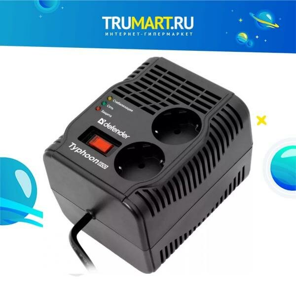Стабилизатор напряжения Defender AVR Typhoon 600 0.6 м 2 розетки 99032