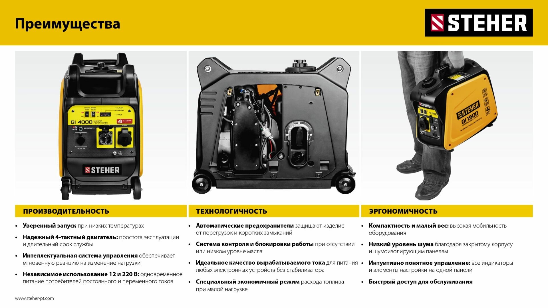 СохранитьSTEHER 3500 Вт, инверторный генератор (GI-4000) интересное: