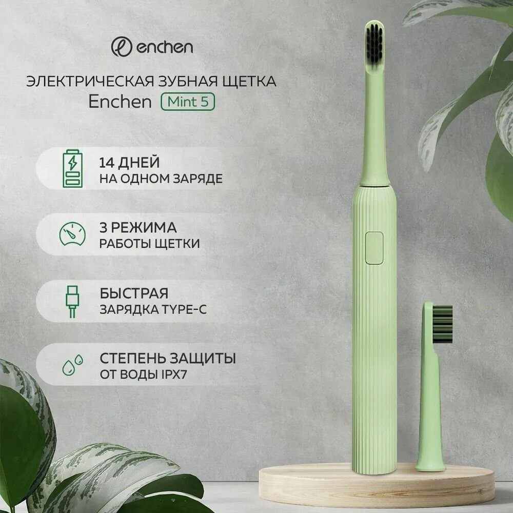 Купить Электрическая зубная щетка Enchen Mint 5 (Green) IPX7 для полости рта и брекетов/ 3 режима / таймер