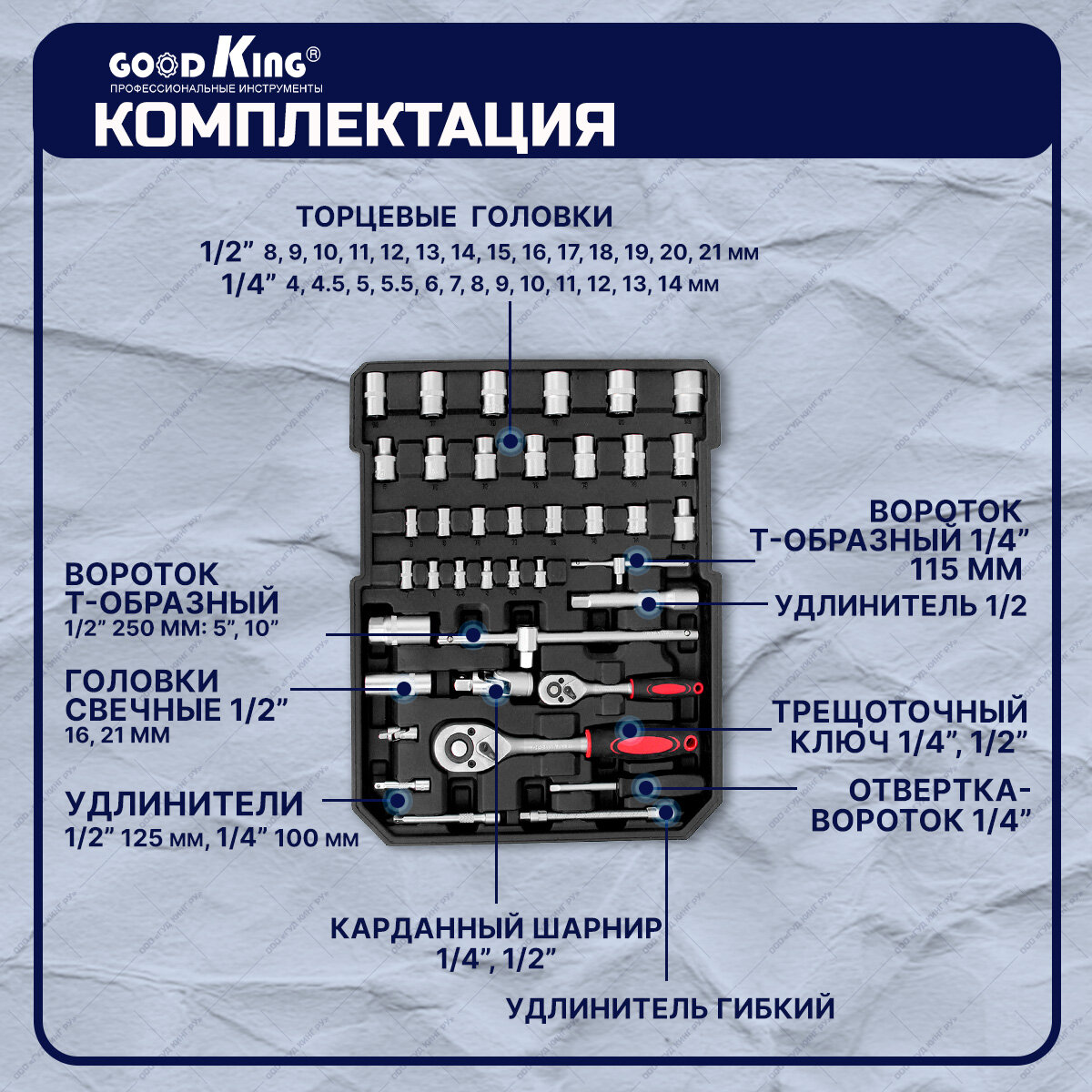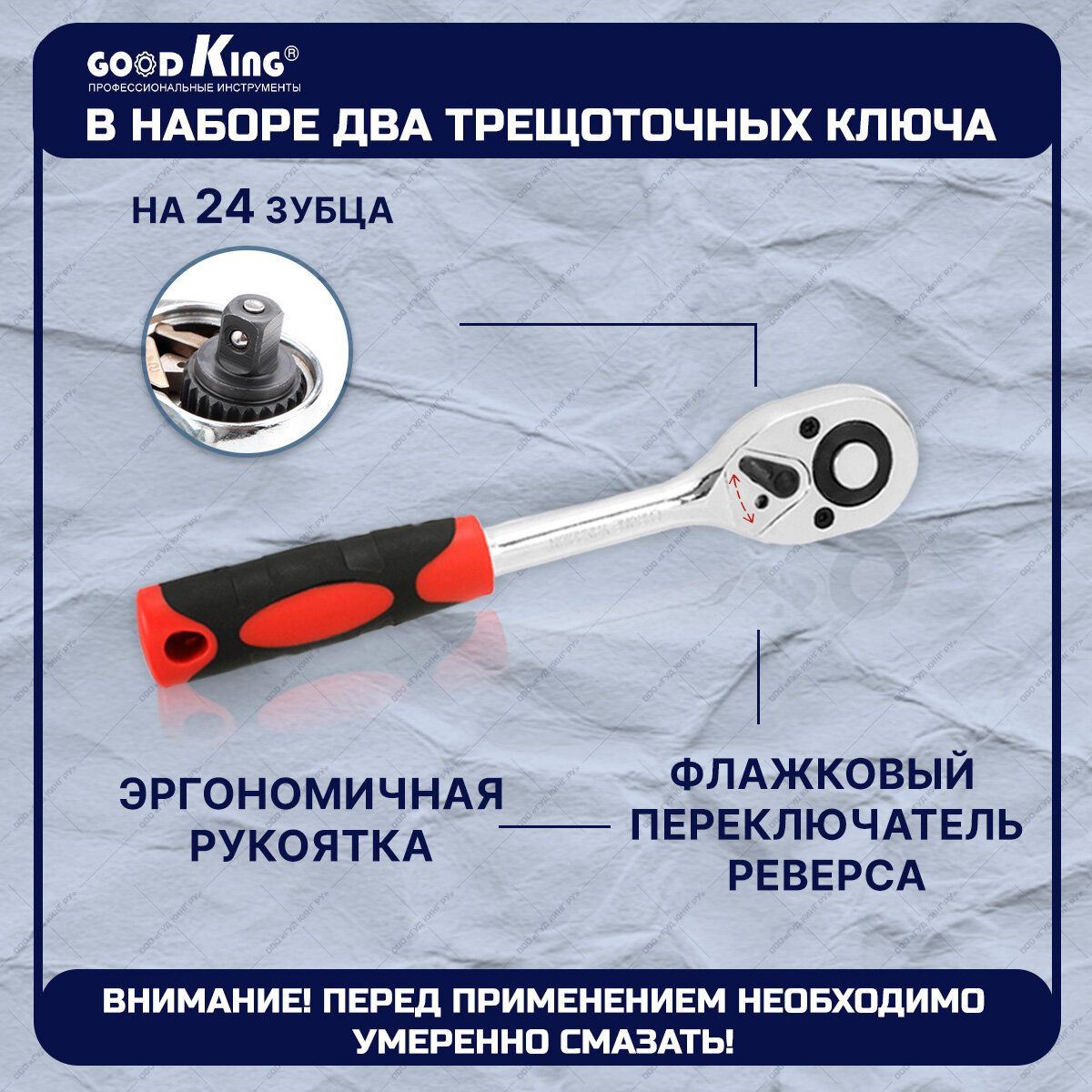 Набор инструментов GOODKING, 187 предметов, трещотка 1/2", 1/4", набор торцевых головок для автомобиля (B-10187)
