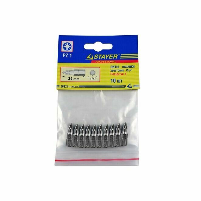 Купить Биты STAYER "PROFI", хвостовик C 1/4", PZ №1, 25 мм {26221-1-25-10} 10 шт