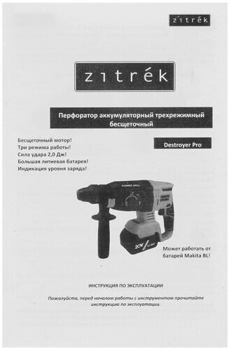 Zitrek Перфоратор аккумуляторный Destroyer Pro 20В 063-4063 .