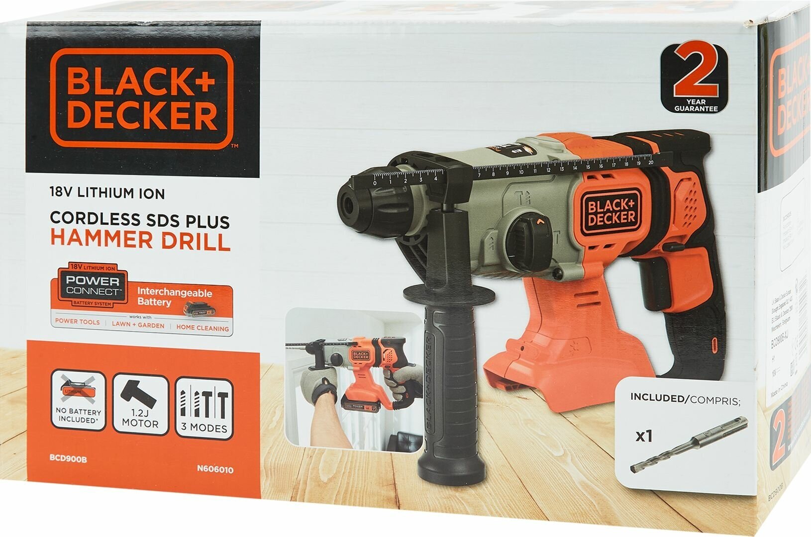 Перфоратор аккумуляторный SDS-plus Black&Decker BCD900B-XJ, 18 В, 1.2 Дж, без АКБ и ЗУ