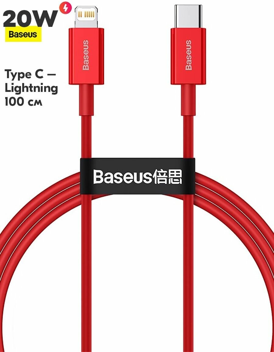 Кабель Baseus Superior Fast ChargingType-C - Lightning (CATLYS-A09), 1 м, 1 шт., красный