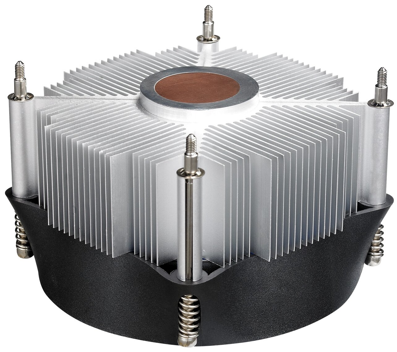 Ненавижу клипсоидные крепления аля от Интел, в этом же кулерке крепление вменяемое и простое, обеспечивающее жёсткое крепление. Медный сердечник. Ровное и отполированное основание |