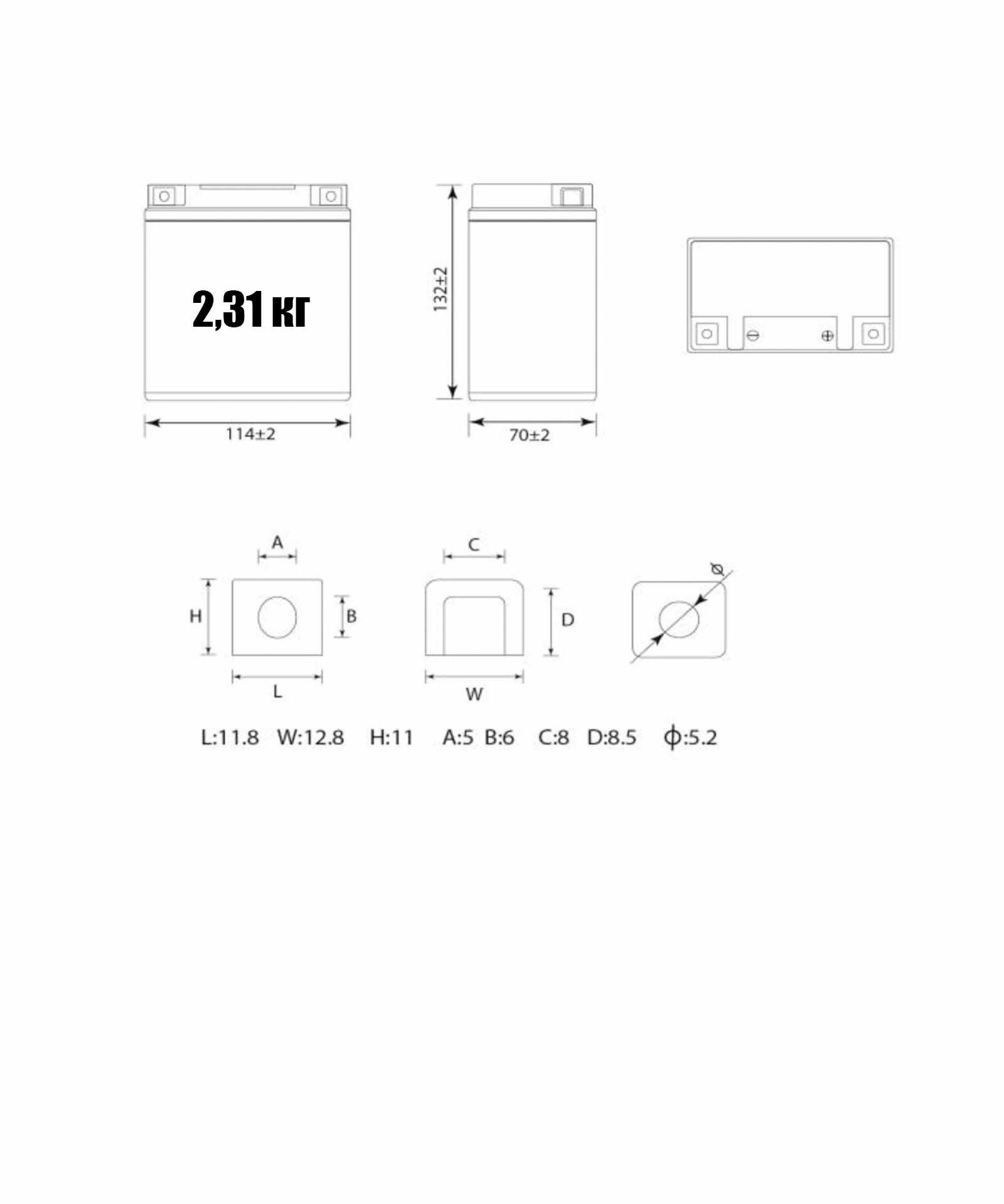 АКБ Delta CT1207.1 YTX7L-BS (12V 7Ah, Размеры: длина 114мм, ширина 70мм, высота 132мм)