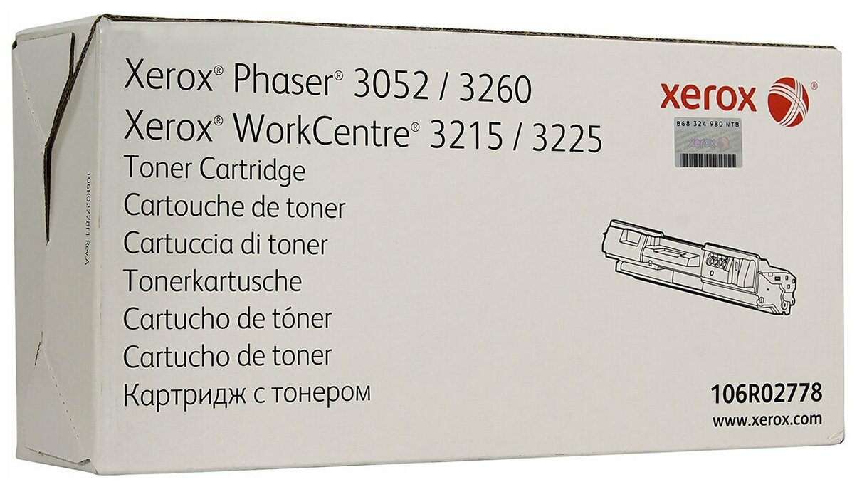 Тонер-картридж XEROX 106R02778 для Phaser 3052, 3260 / WorkCentre 3215, 3225, 3K страниц, стандартная емкость