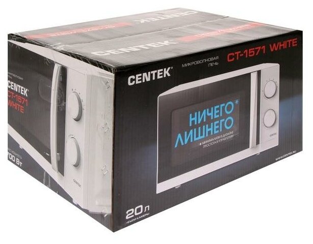Centek СВЧ 700W 20лоткрывание дверцы ручкой, премиальная упаковка, таймер 30 мин CT-1571 White