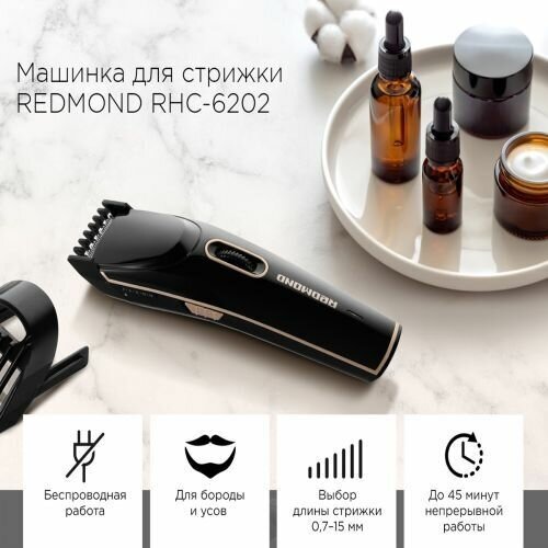 Машинка для стрижки REDMOND RHC-6202, 2 Вт, 1 насадка, 0.7-15 мм, 220В/АКБ, шнур 1.8 м интересное: