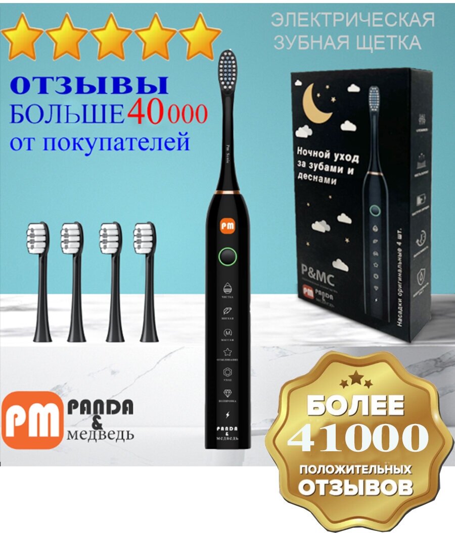 Электрическая зубная щетка TOOTHBRUSH Panda & Медведь СS-561 звуковая , черный интересное: