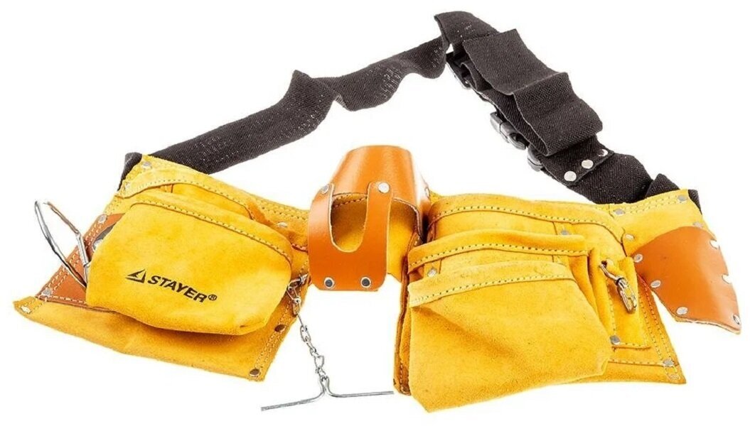 Купить STAYER кожаный, 10 карманов, 3 подвески, пояс для инструментов (38512)
