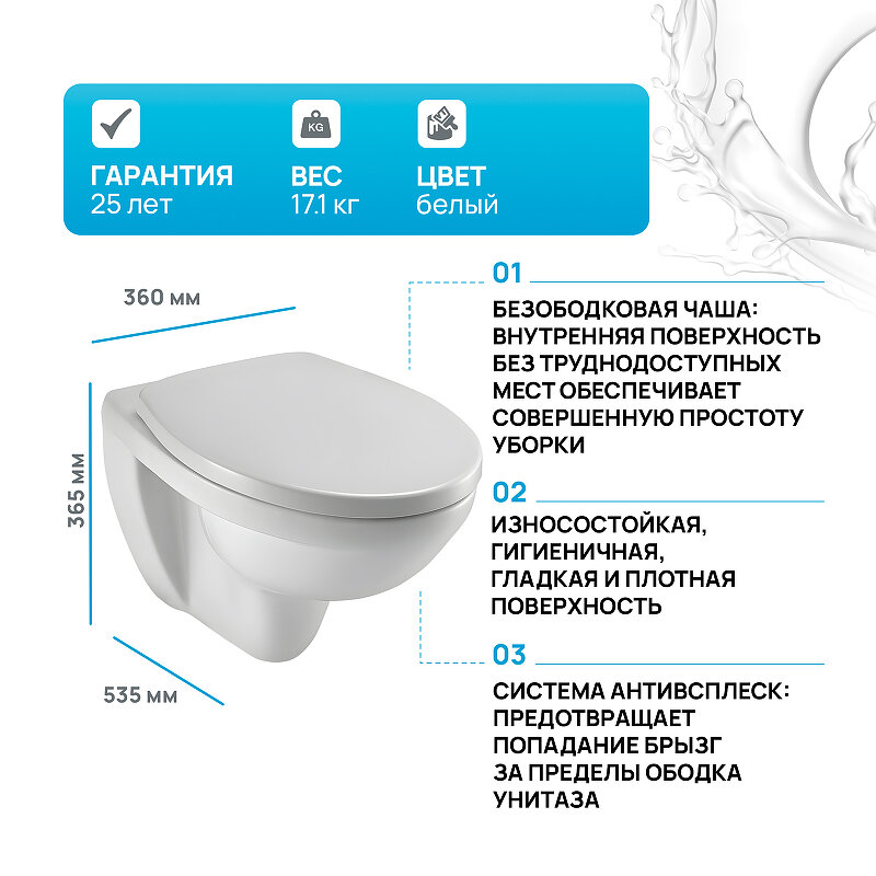 | Отзыв: | Мне нравится, что он безободковый. Живу один, клининг не часто получается вызывать, так что уборкой иногда и сам занимаюсь. Проблем с унитазом нет. Нигде не течет, не провисает. |