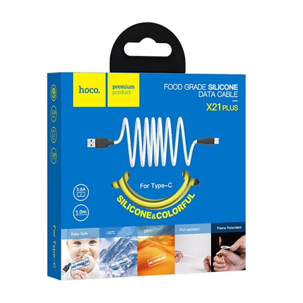 Силиконовый кабель USB - Type-C HOCO X21 Plus 2 метра 3.0А белый "Провод usb type-c 2 метра силиконовый"