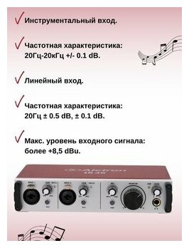 | Разъемы и интерфейсы | инструментальный вход (Hi-Z), фантомное питание |
