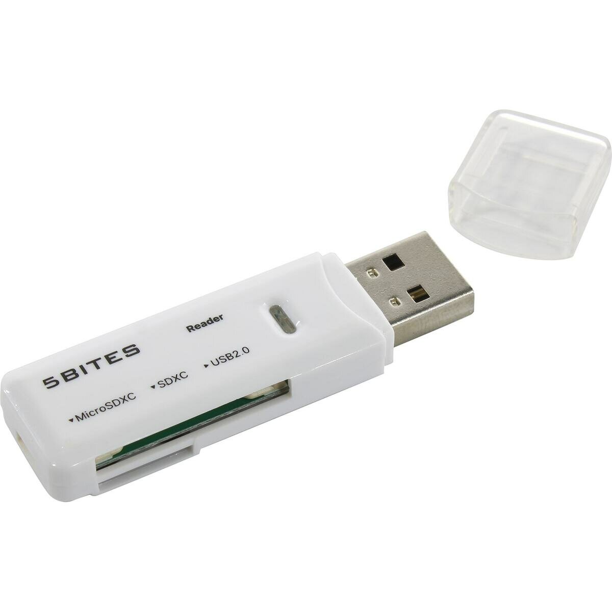 Картридер внешний 5Bites RE2-100WH (USB2.0), для считывания SD,TF-microSD белый