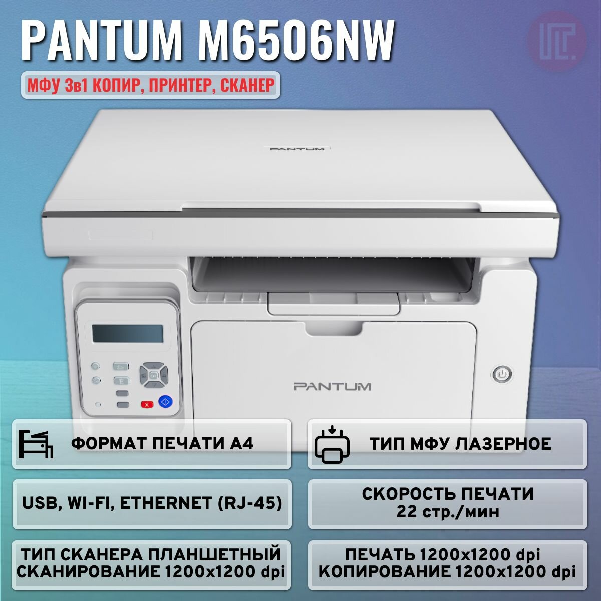 Pantum M6506NW МФУ, Mono laser, C/P/S, 22 стр/мин, LAN, WiFi, USB, 1200dpi, цвет серый