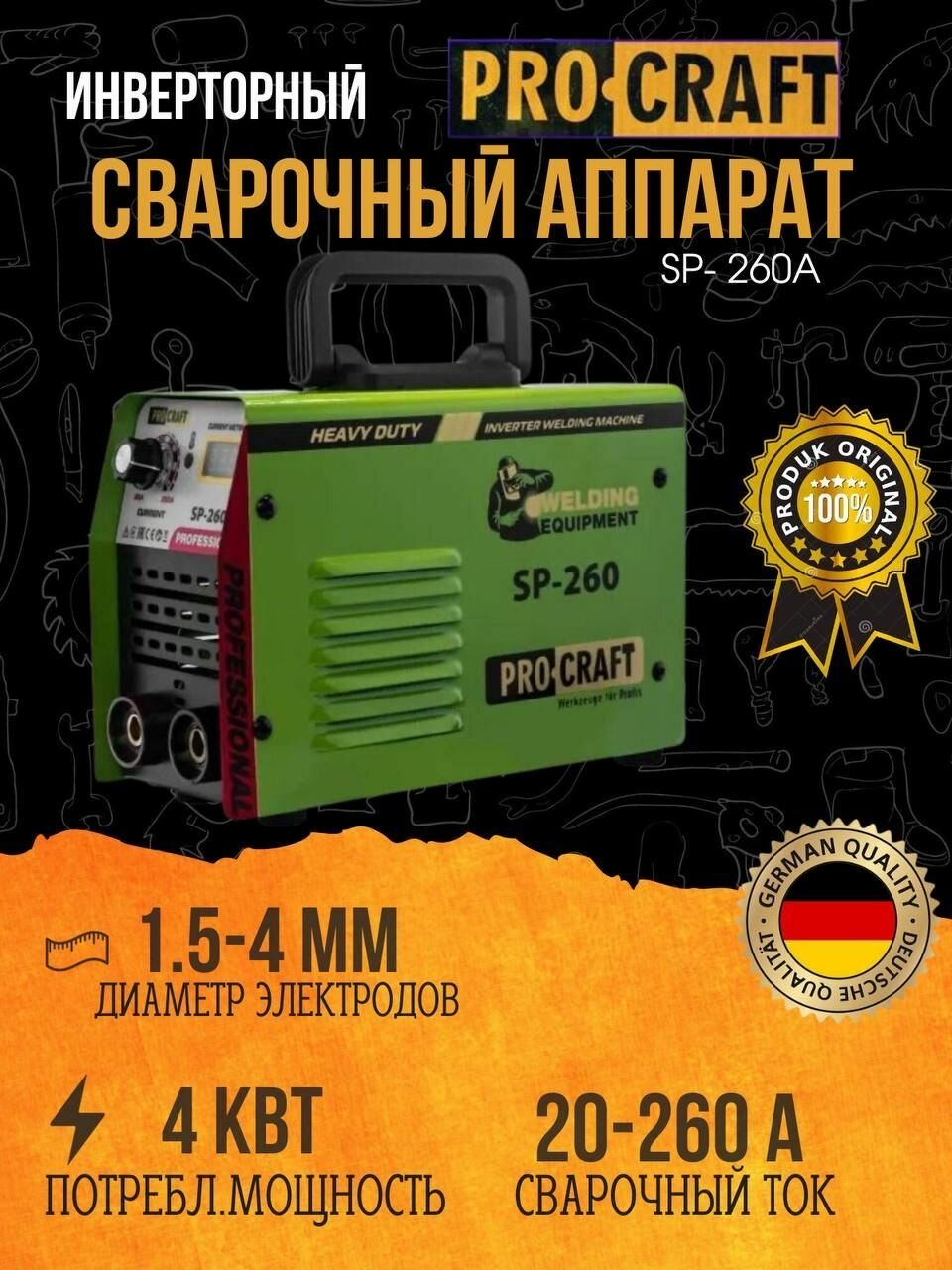 Купить Сварочный аппарат инверторный Procraft SP260, электроды 1,6-4мм, MMA, 20-260А, 4кВ