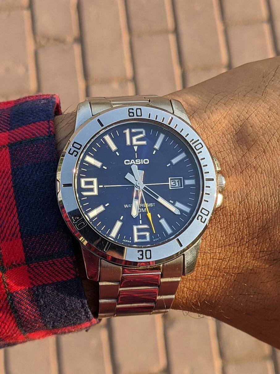 | Минусы: | можно подсветку хотя бы диодную поставить и wr метров на 100 по той же цене. и дата банк с солнечной батареей, ремешок литой, золотые буквы casio, что еще? светодиод в корпус на 12 часах как фонарик, радиостанцию если на острове в трусах оказался |