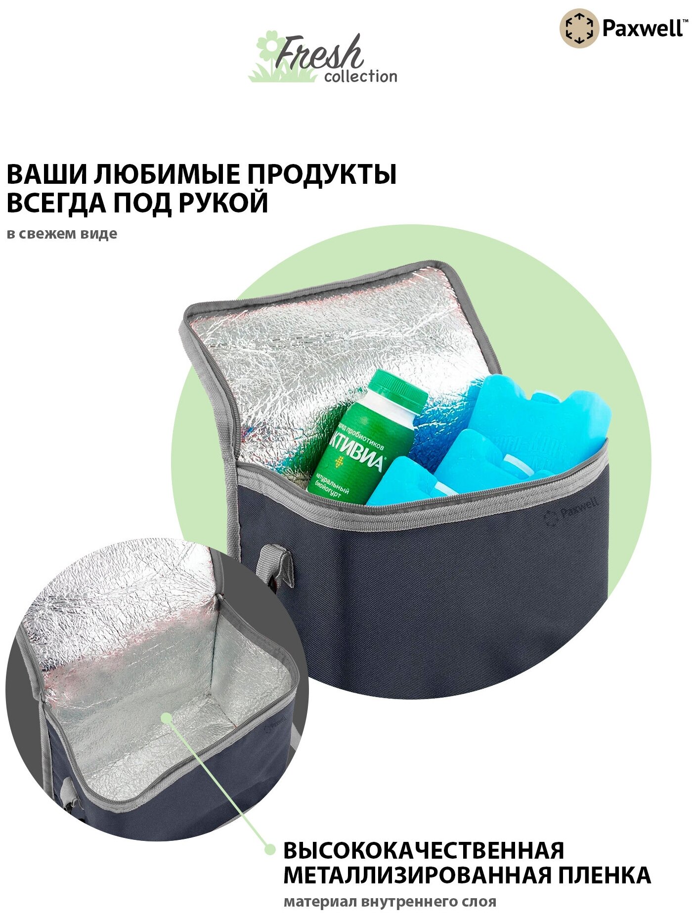 PAXWELL Сумка-холодильник/Термосумка с лямкой маленькая(6Л) для ланча и пикника Фреш, цвет темно-синий, серая окантовка для ланча и пикника