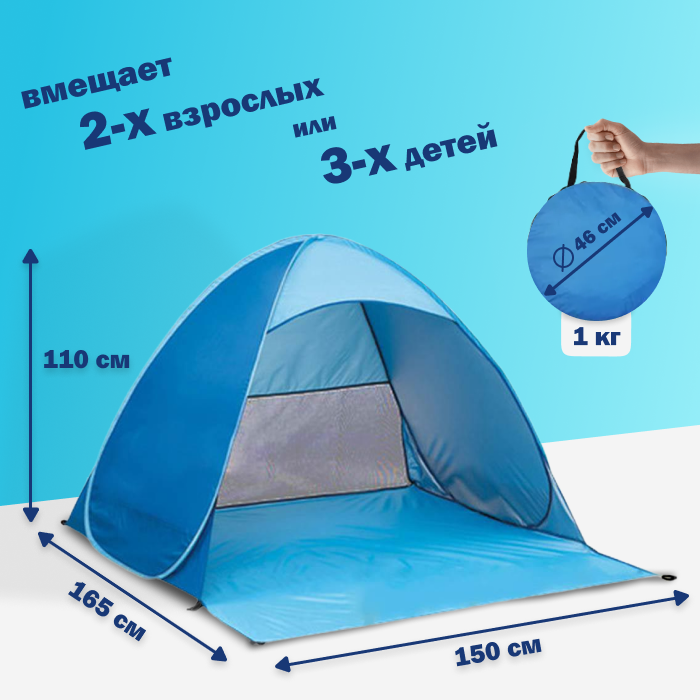 Палатка 2-местная пляжная автоматическая 150х165х110см / тент от солнца (не требует сборки) (Голубой) интересное: