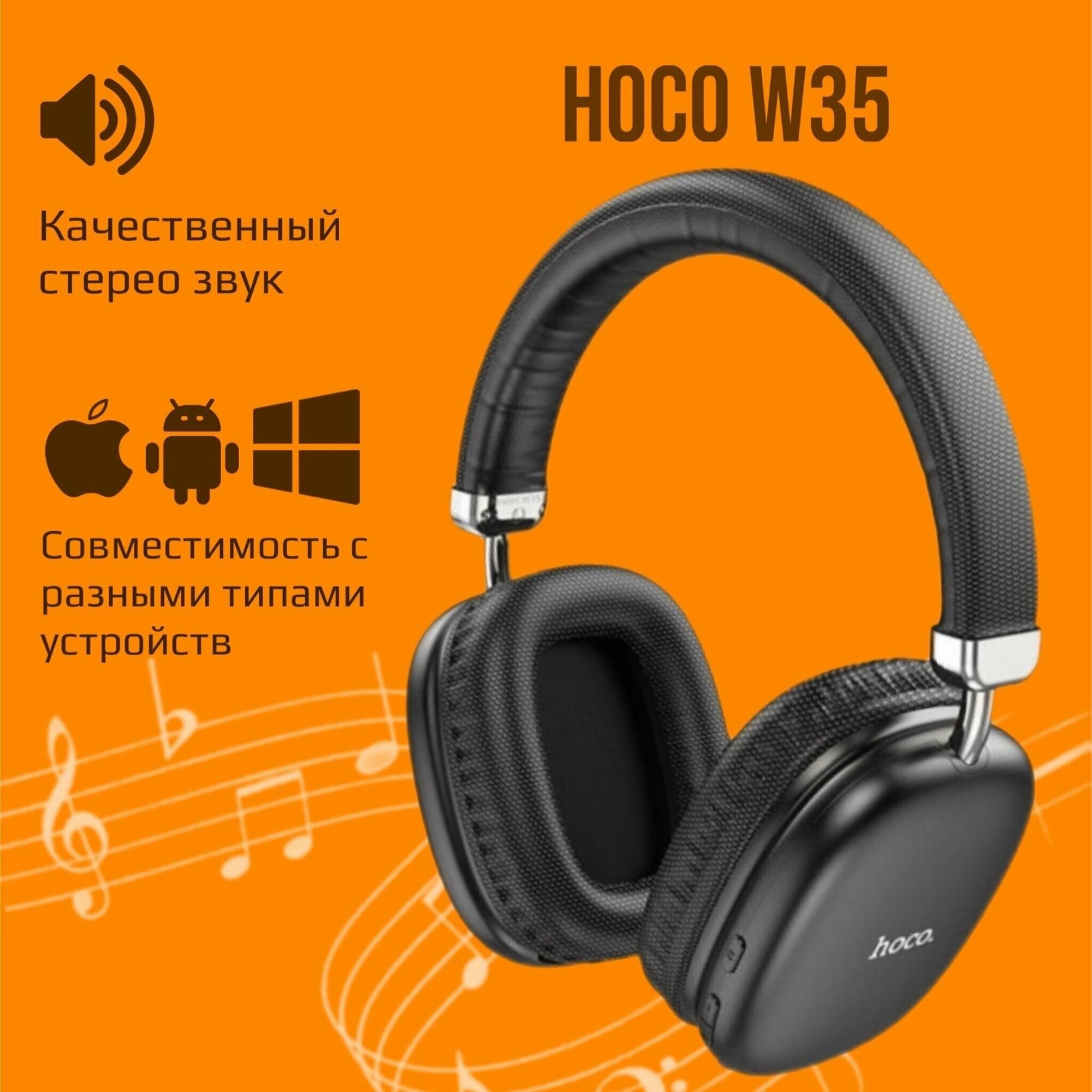 Наушники HOCO W35 полноразмерные, беспроводные, BT 5.3, черный