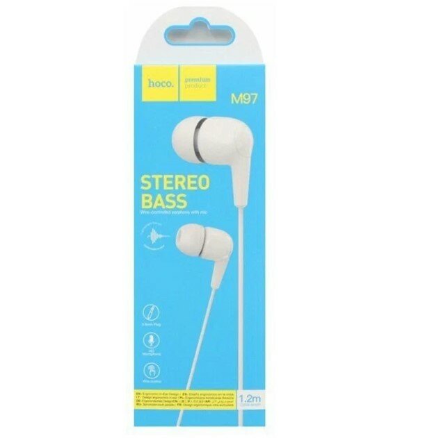 Наушники-вкладыши внутриканальные проводные Hoco M97 с микрофоном белые и черные.