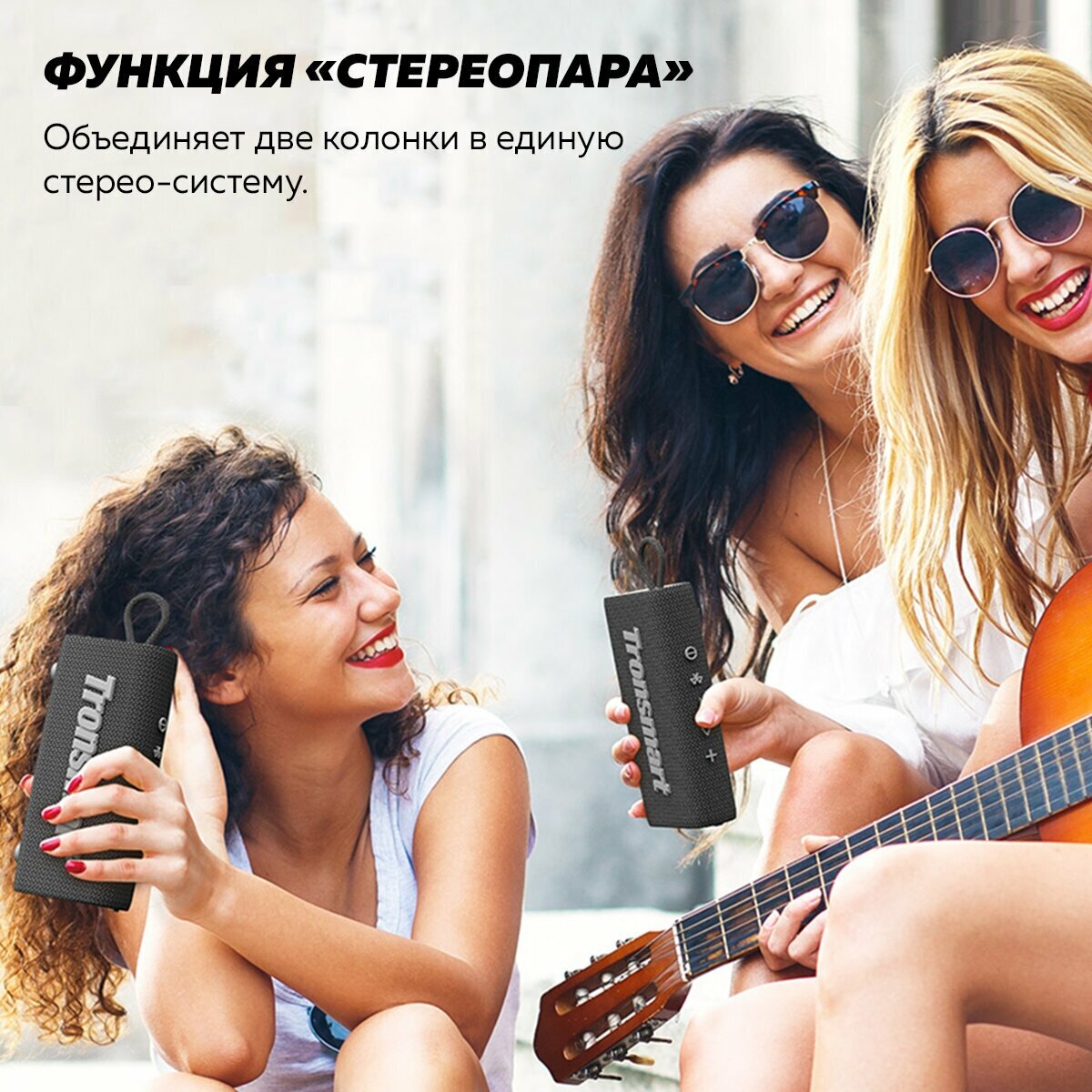 Беспроводная колонка Tronsmart Trip 10W (Black), Блютуз колонка музыкальная (в подарок, для улицы, для дома, для пикников, для вечеринок, для подарков (IPX7, 2000 мАч, 2 динамика)