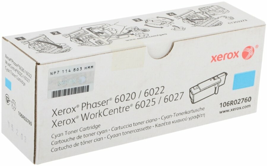 Тонер Картридж Xerox 106R02760 голубой (1000стр.) для Xerox Phaser 6020/6022/6025/6027