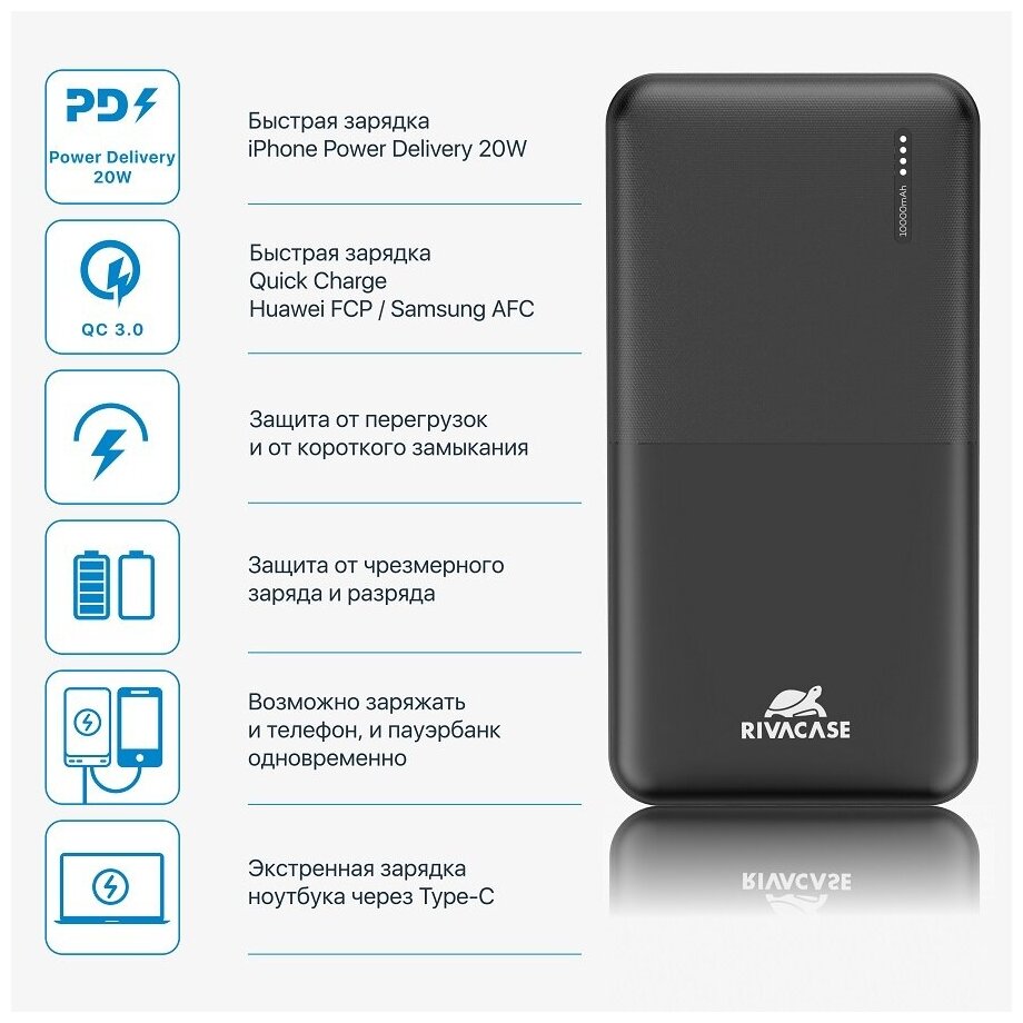 Внешний аккумулятор RIVACASE VA2532 10000 mAh QC/PD / черный