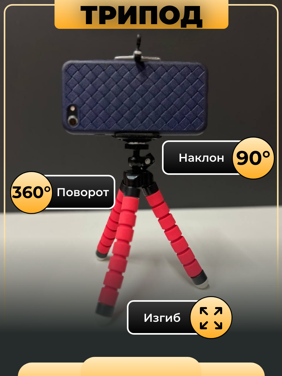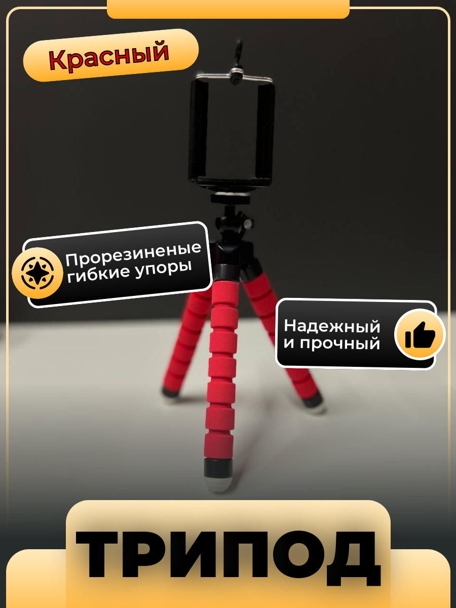 Штатив-трипод для смартфона на гибких ножках с держателем для телефона в комплекте (красный)