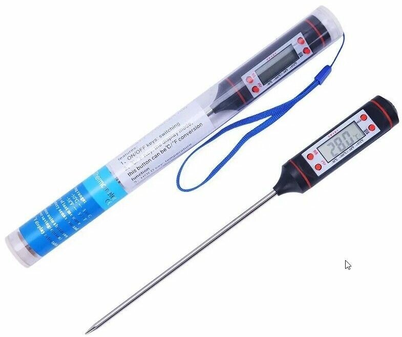 Кулинарный термометр электронный со щупом из нержавеющей стали, термометр для еды, мяса, вина, провод 1 метр / таймер кухонный