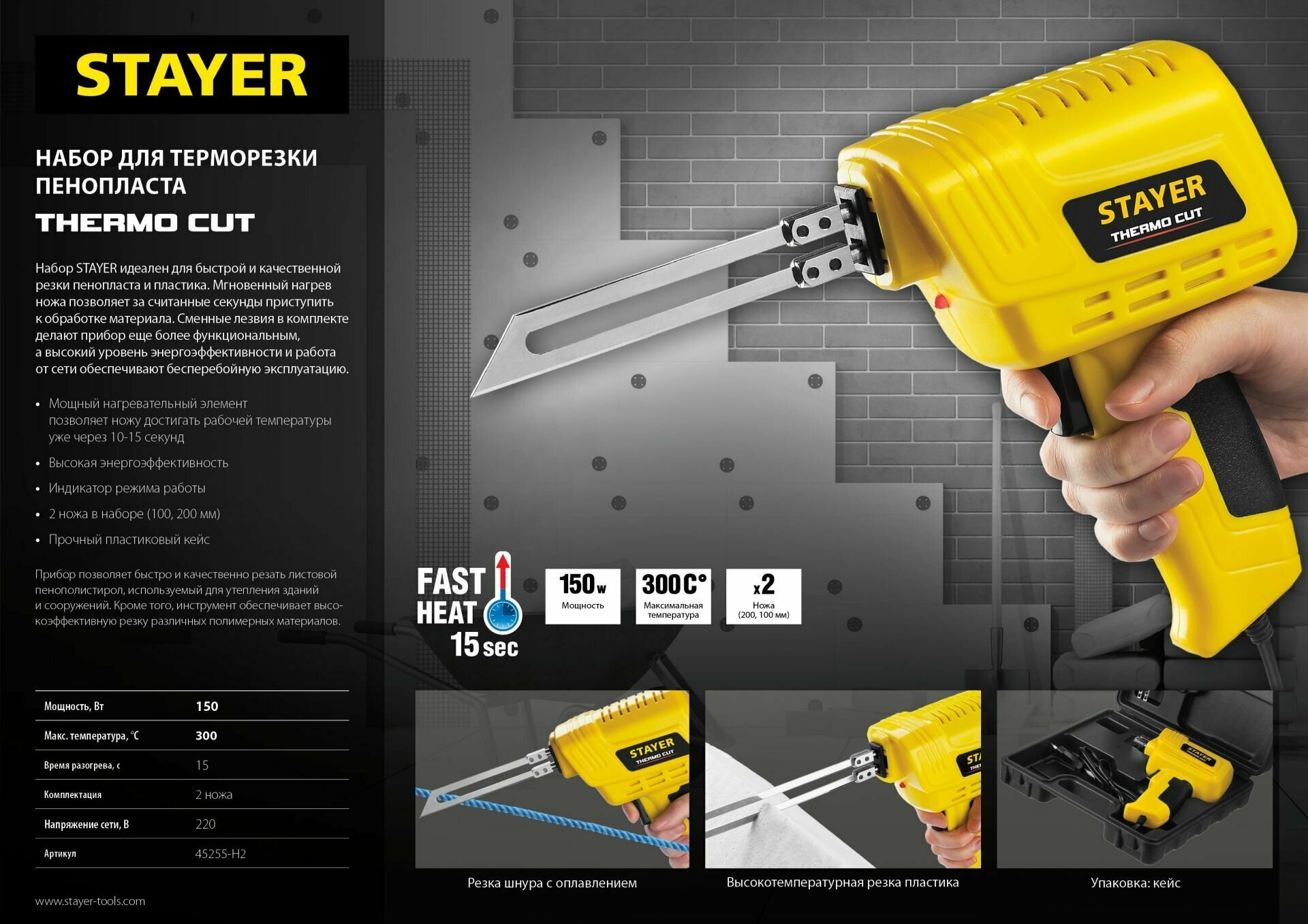 Stayer Набор "Thermo cut" для терморезки пенопласта, пластика, 45255-H2, 150 Вт, 2 ножа 45255-H2 .