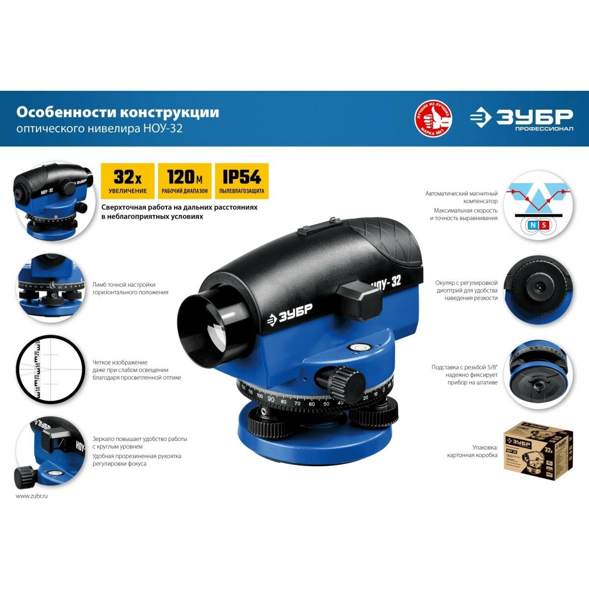 ЗУБР 120 м, увеличение 32Х, оптический нивелир НОУ-32 34917 Профессионал