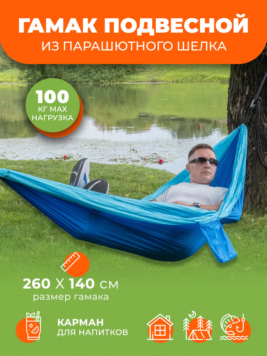 | Плюсы: | Отличный гамак. Лёгкий, занимает мало места. Есть карман для напитков в который он сам же и запаковывается. |