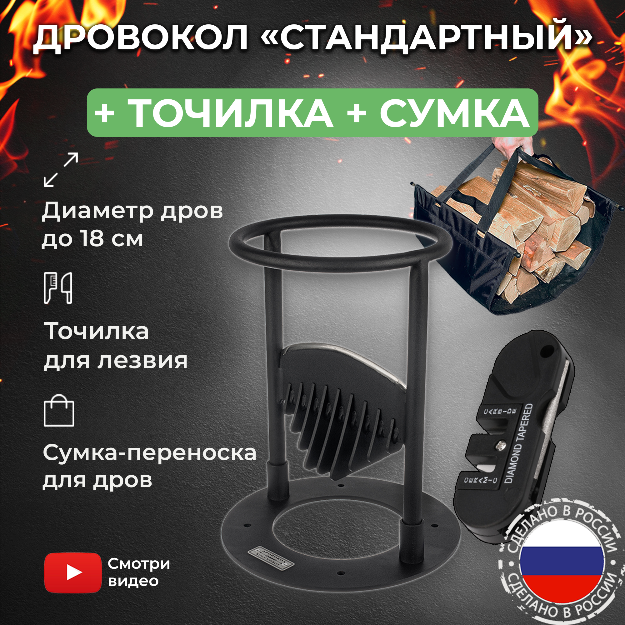 Набор инструментов для заготовки дров KOLUNDROV: ручной дровокол Стандартный + универсальная точилка + сумка-переноска для дров