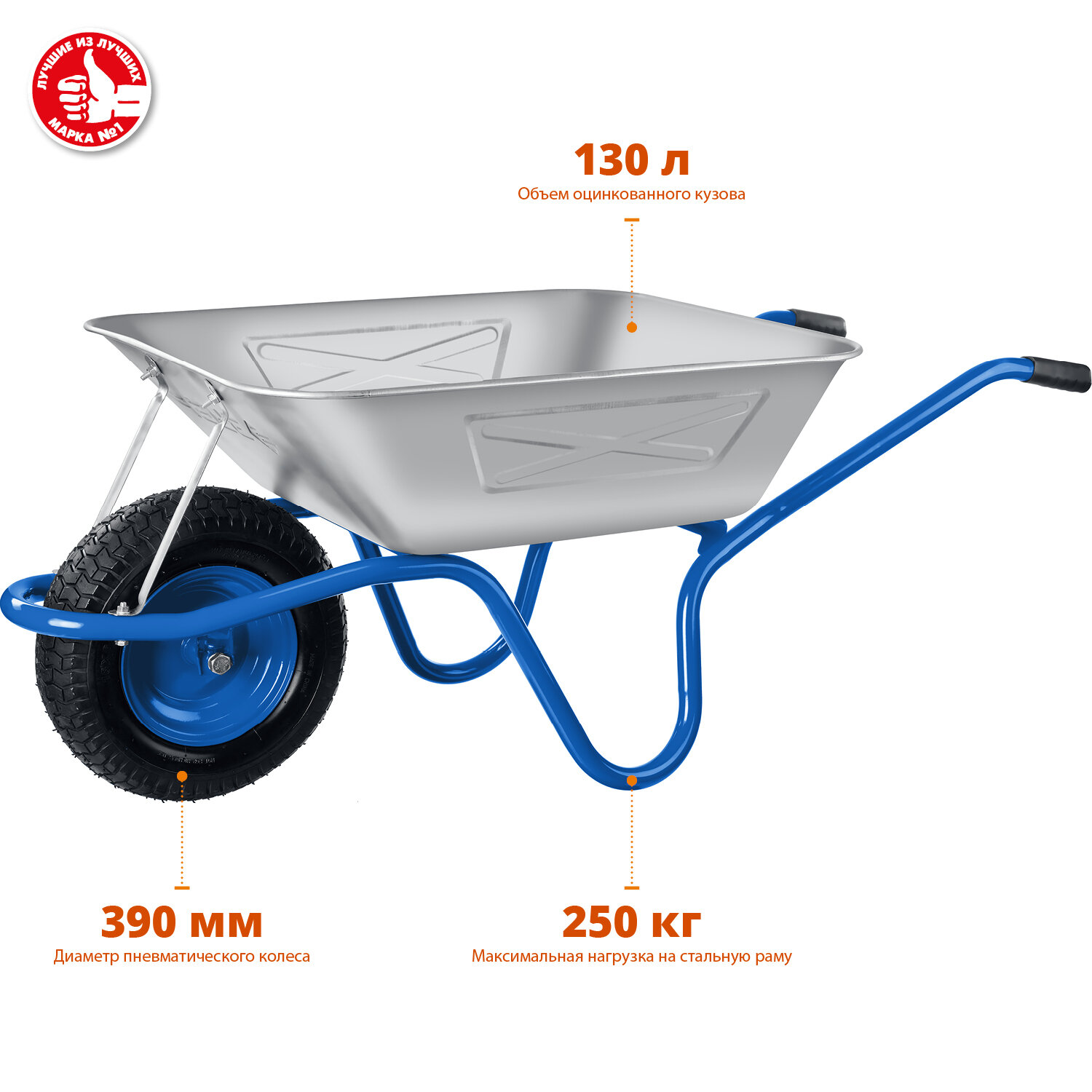 Тачка ЗУБР ПТ-250 39907, пневматическое колесо, 130 л, 250 кг