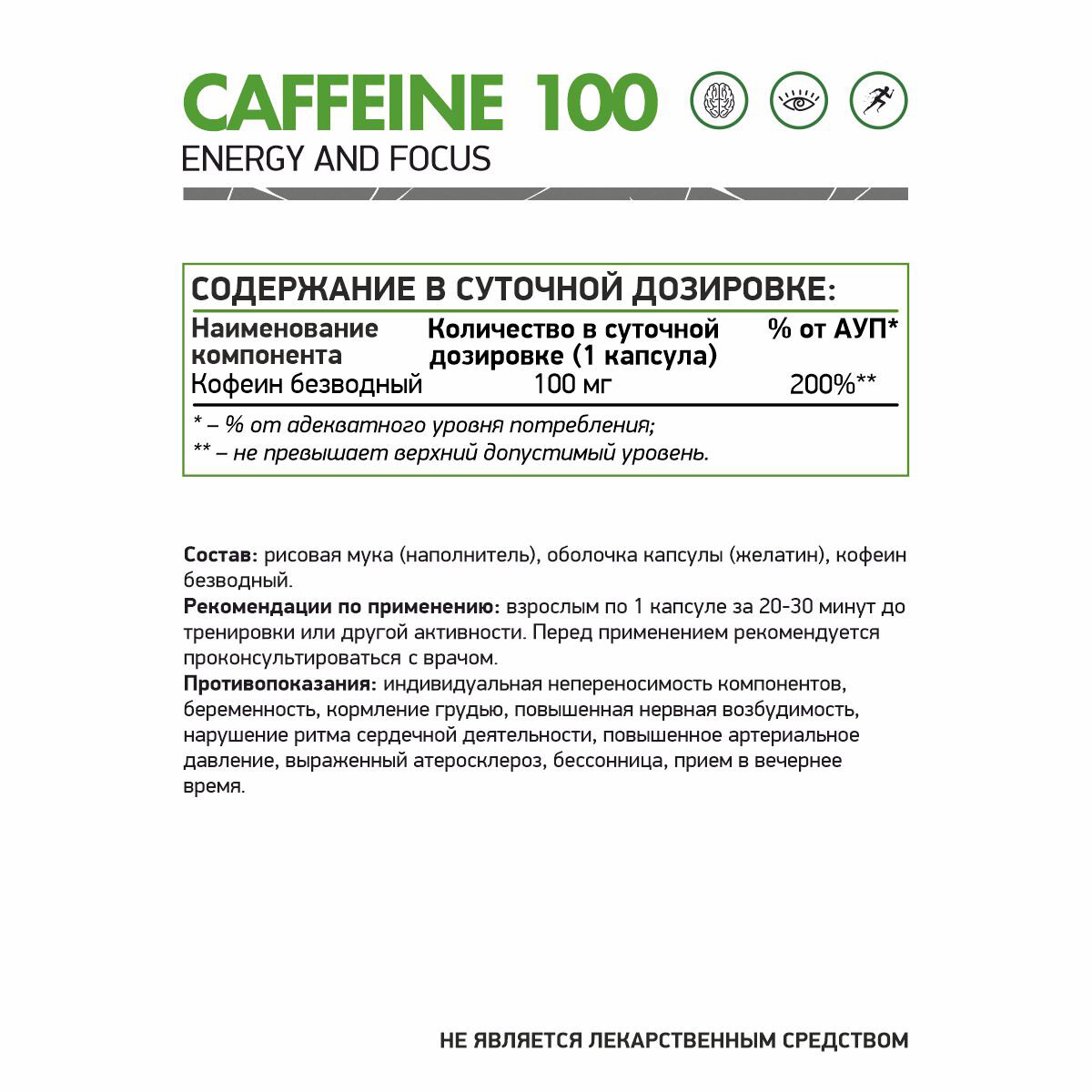 NaturalSupp Caffeine (100 мг) 60 капсул интересное: