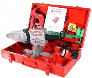 Сварочный аппарат для полипропиленовых труб 50-75 мм, 2000 Вт VALTEC / Комплект оборудования для сварки пластикового трубопровода: паяльник, набор насадок, ножницы в кейсе, арт. VTp.799.E.050075