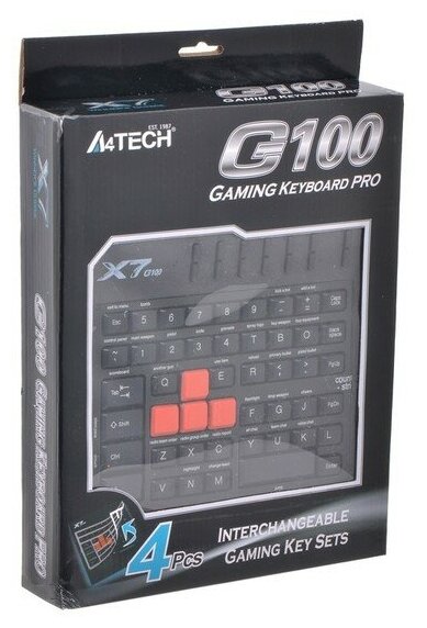 | Комплектация | 4 сменных панели с командами адаптированные под Counter Strike, Battle Field 2, Call of Duty 2, Half Life II, клавиатура A4Tech X7-G100, руководство пользователя, чехол |