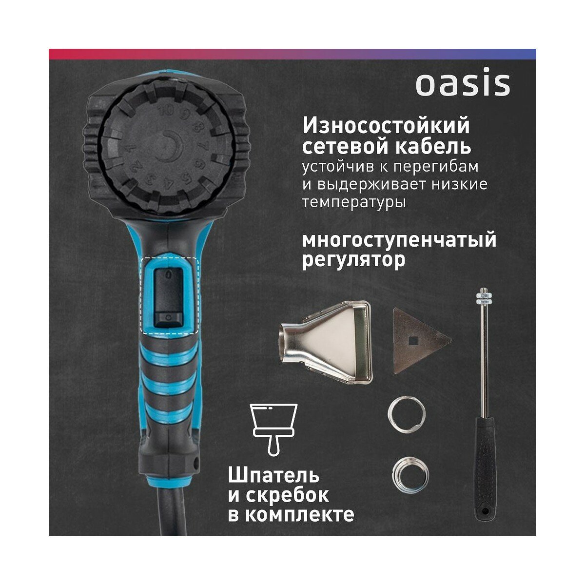 Фен строительный технический с насадками Oasis TG-20R интересное: