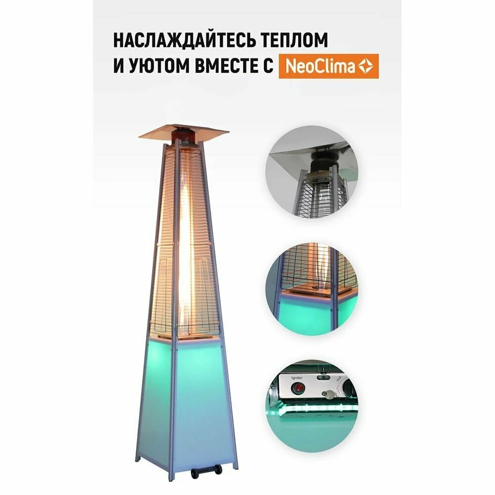 Уличный газовый обогреватель (форма Пирамида) Neoclima, с LED подсветкой, 13 кВт., 08HW-BL