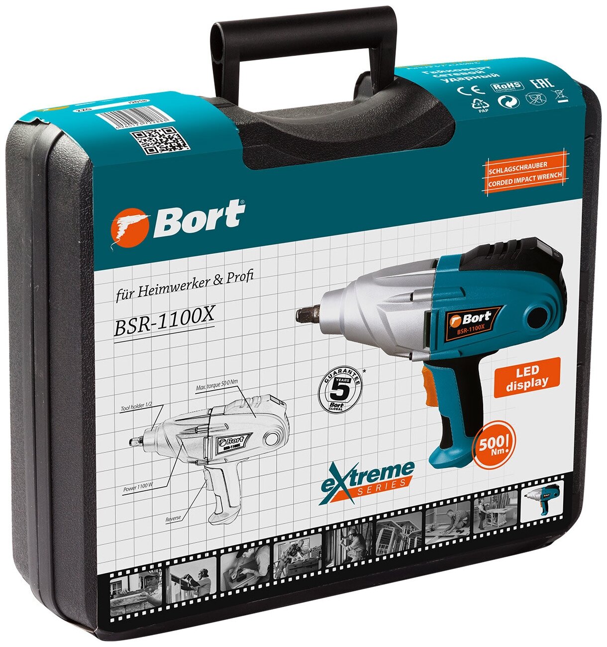 Гайковерт сетевой BSR-1100X, 93722883, 1100Вт., 500Hm., кейс, BORT