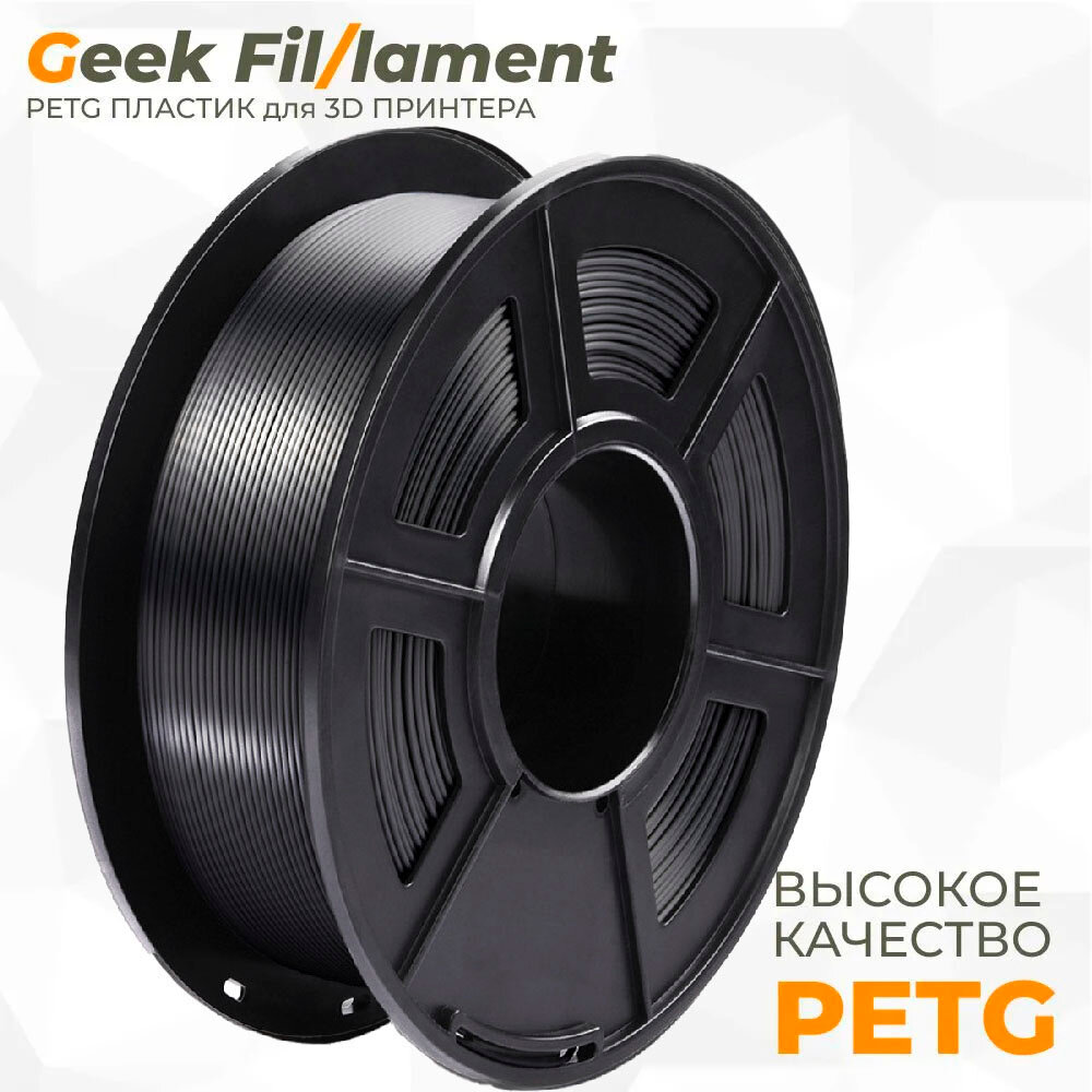 PETG пластик для 3D принтера Geekfilament 1.75мм, 1 кг темно-серый прозрачный (Black Diamond)