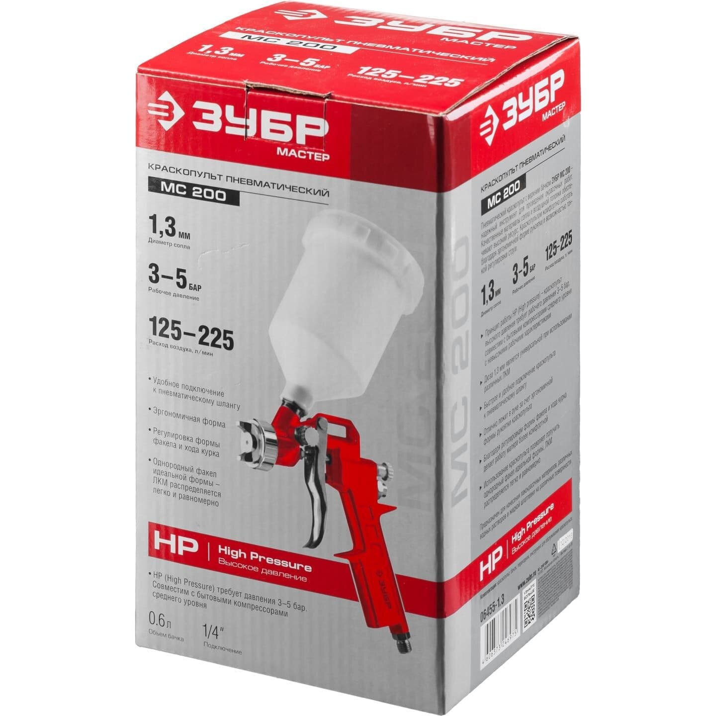 Краскораспылитель Зубр Мастер МС 200, HP, c верхним бачком, 1.3мм
