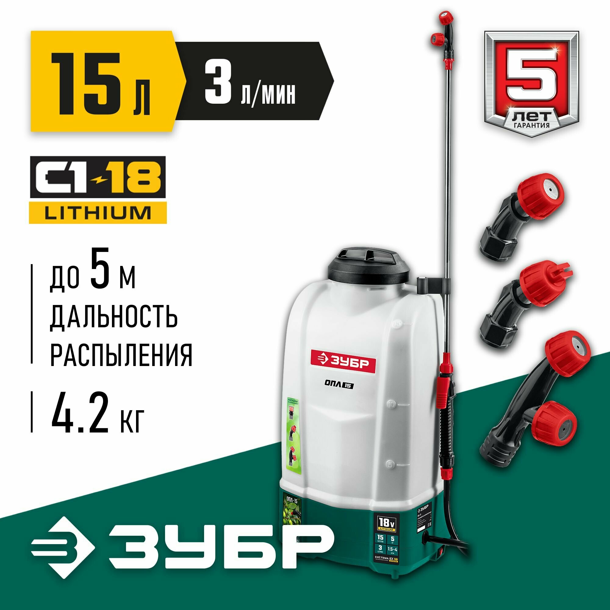 ЗУБР 15 л бак, без АКБ, опрыскиватель аккумуляторный, Li-Ion 18В ОПЛ-15