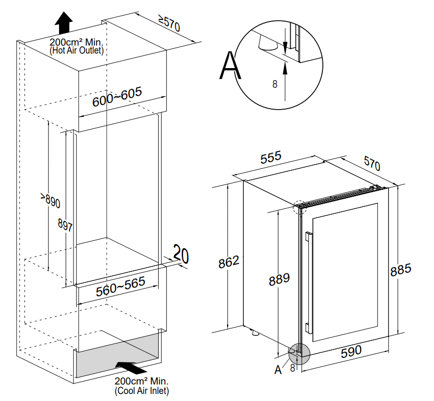 Встраиваемый винный шкаф Temptech Oslo OZ90DW