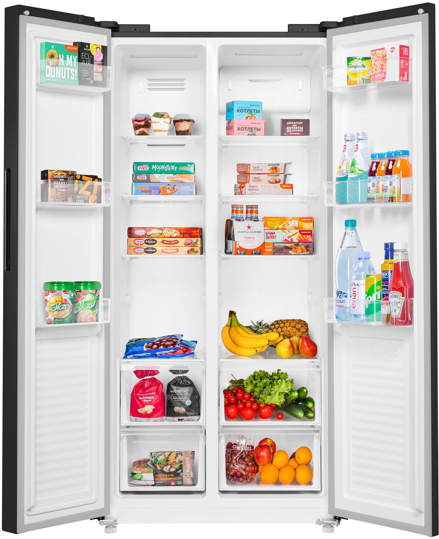 Холодильник двухкамерный MAUNFELD MFF177NFBE Total No Frost, Side by Side, инверторный черный