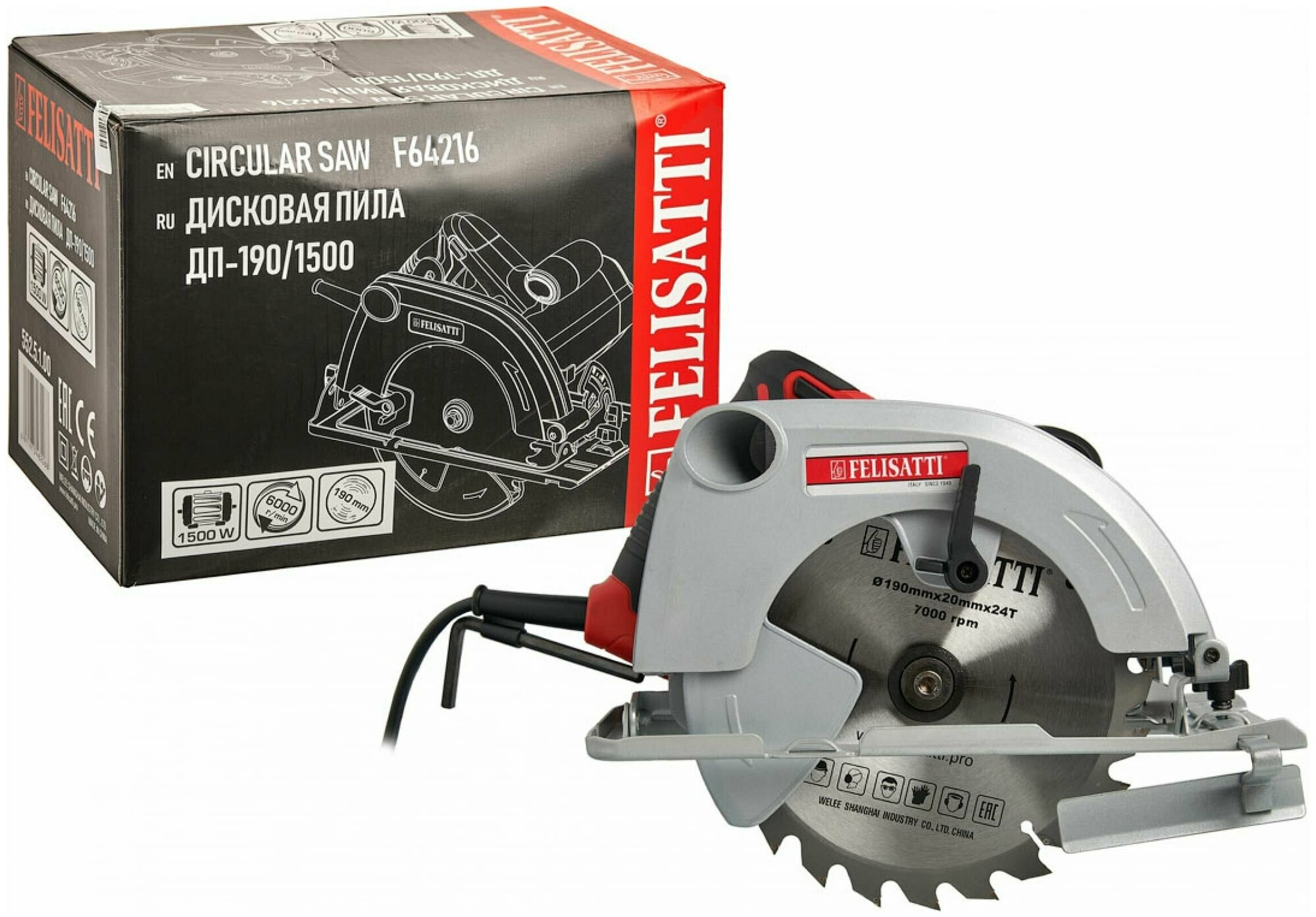 Дисковая пила Felisatti ДП-190/1500, 1500 Вт, серебристый/красный/черный