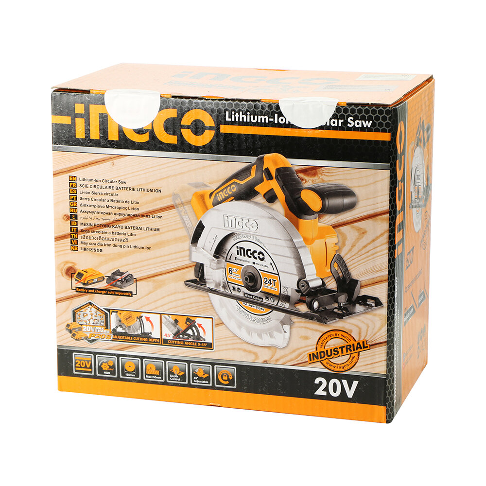 Купить Пила циркулярная аккумуляторная ingco csli1651 20в 165х20мм без акб и зу