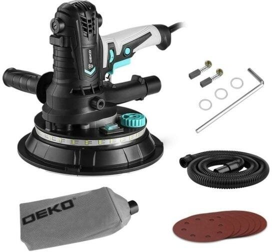 Шлифмашина сетевая DEKO DKG900, 180 мм, 900 Вт, для стен и потолков, с LED подсветкой